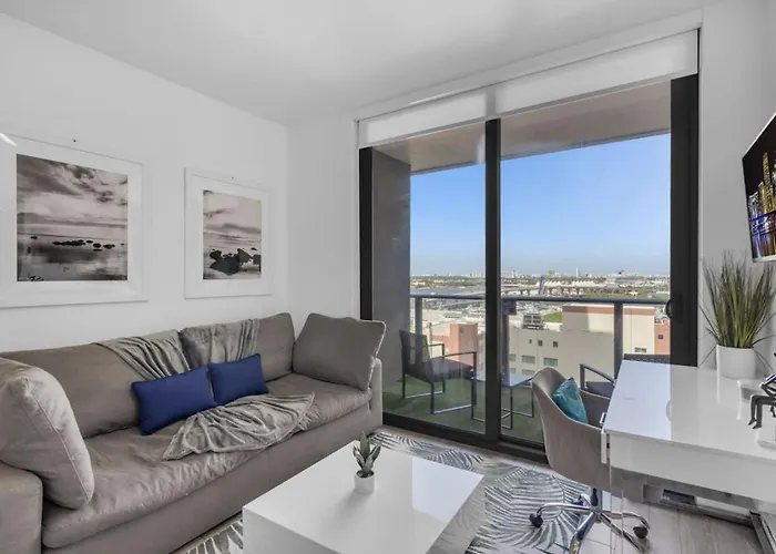 Einkaufszentrum Bayside Shopping Mall ist nicht weit entfernt von der 2-Zimmer-Ferienwohnung Bayview 2BR Retreat Stunning Views and Pool, während Bahnhof MiamiCentral ungefähr 600 Meter von der Unterkunft entfernt liegt. Diese 100 m² großen Apartments ist im Stadtviertel Downtown Miami von Miami gelegen. Auch One World Trade Center ist innerhalb von rund 5 Gehminuten zu erreichen.